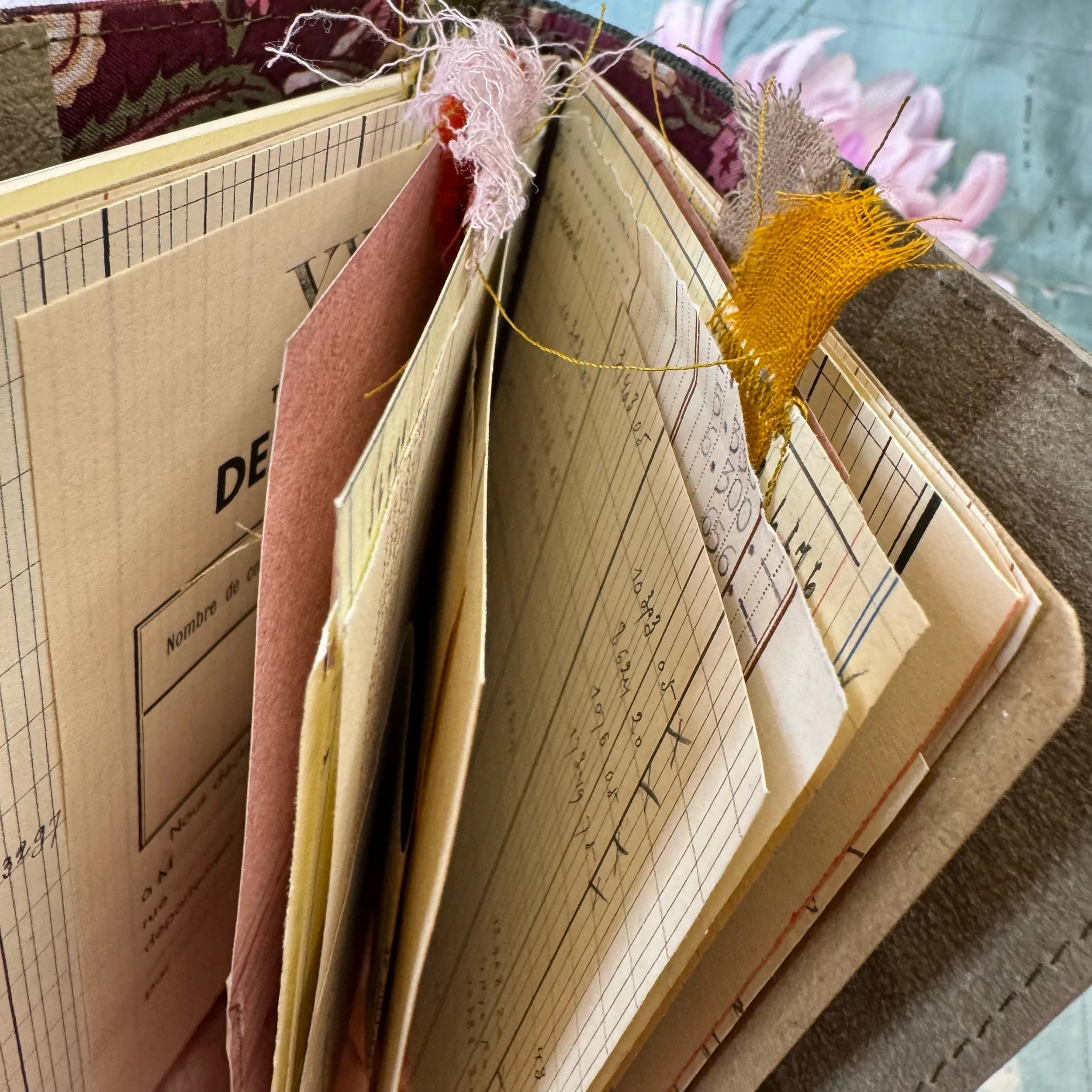 The cover and inserts are hand made and sewn with vintage hand crank sewing machine. They can present some irregularities.