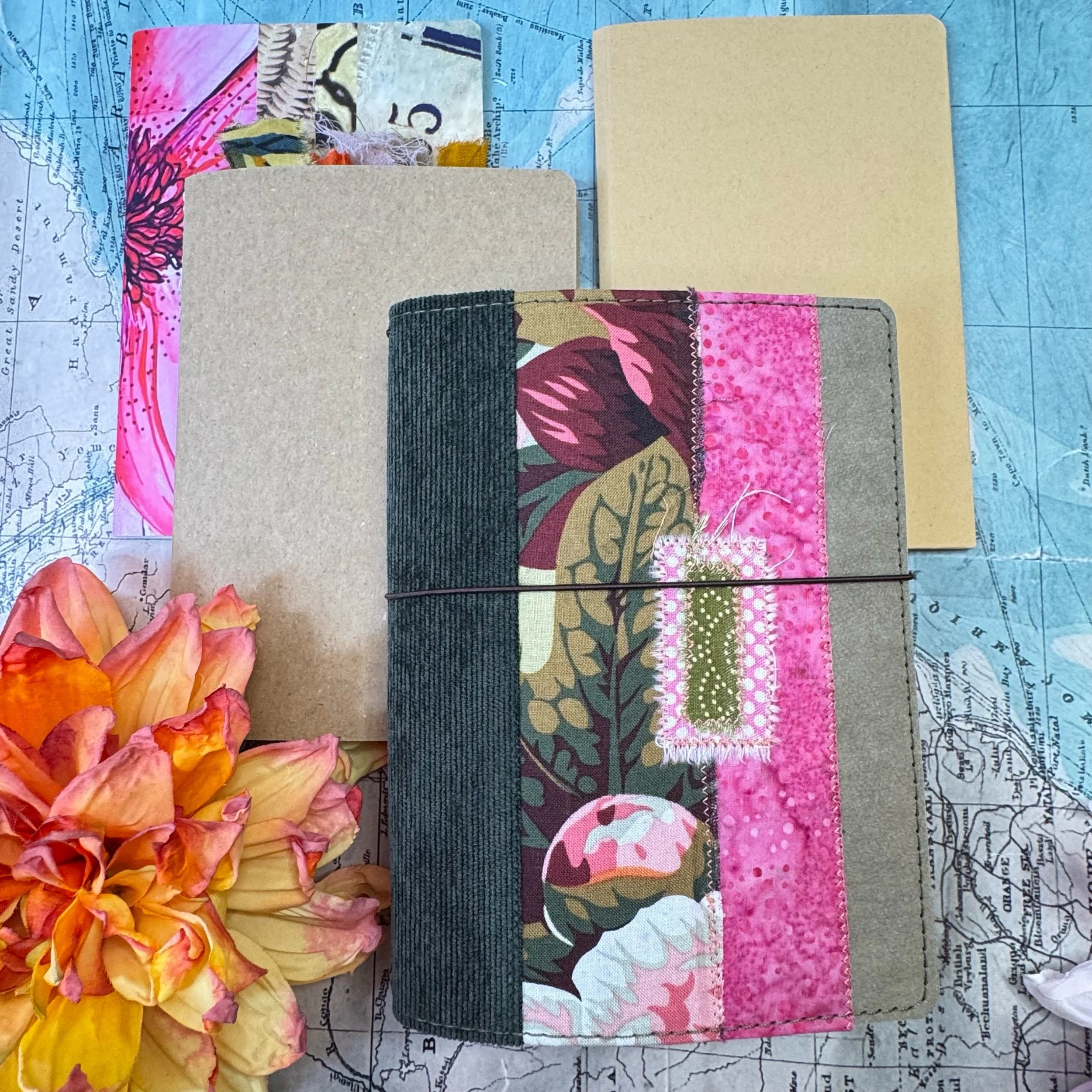 Hand Made Journal Cover - Fabric and Vegan Leather