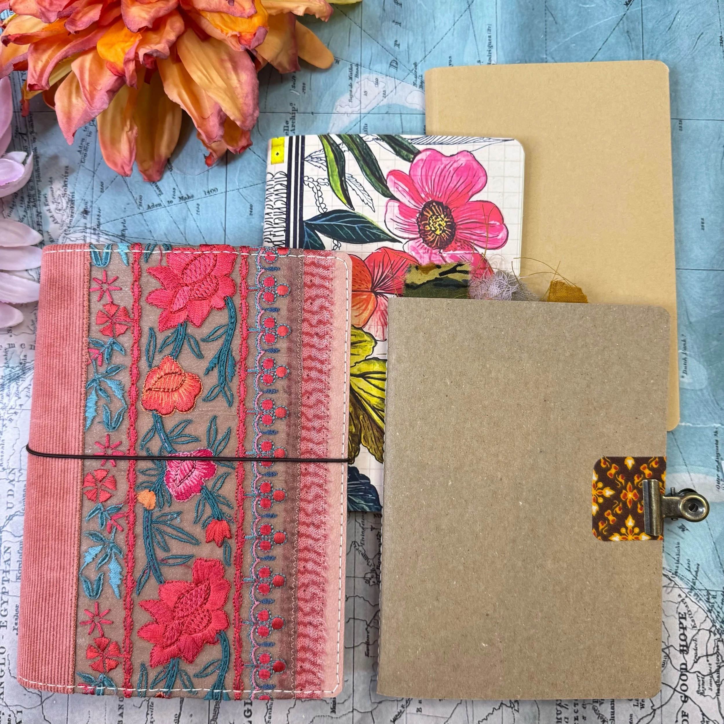 Hand Made Journal Cover - Fabric and Vegan Leather