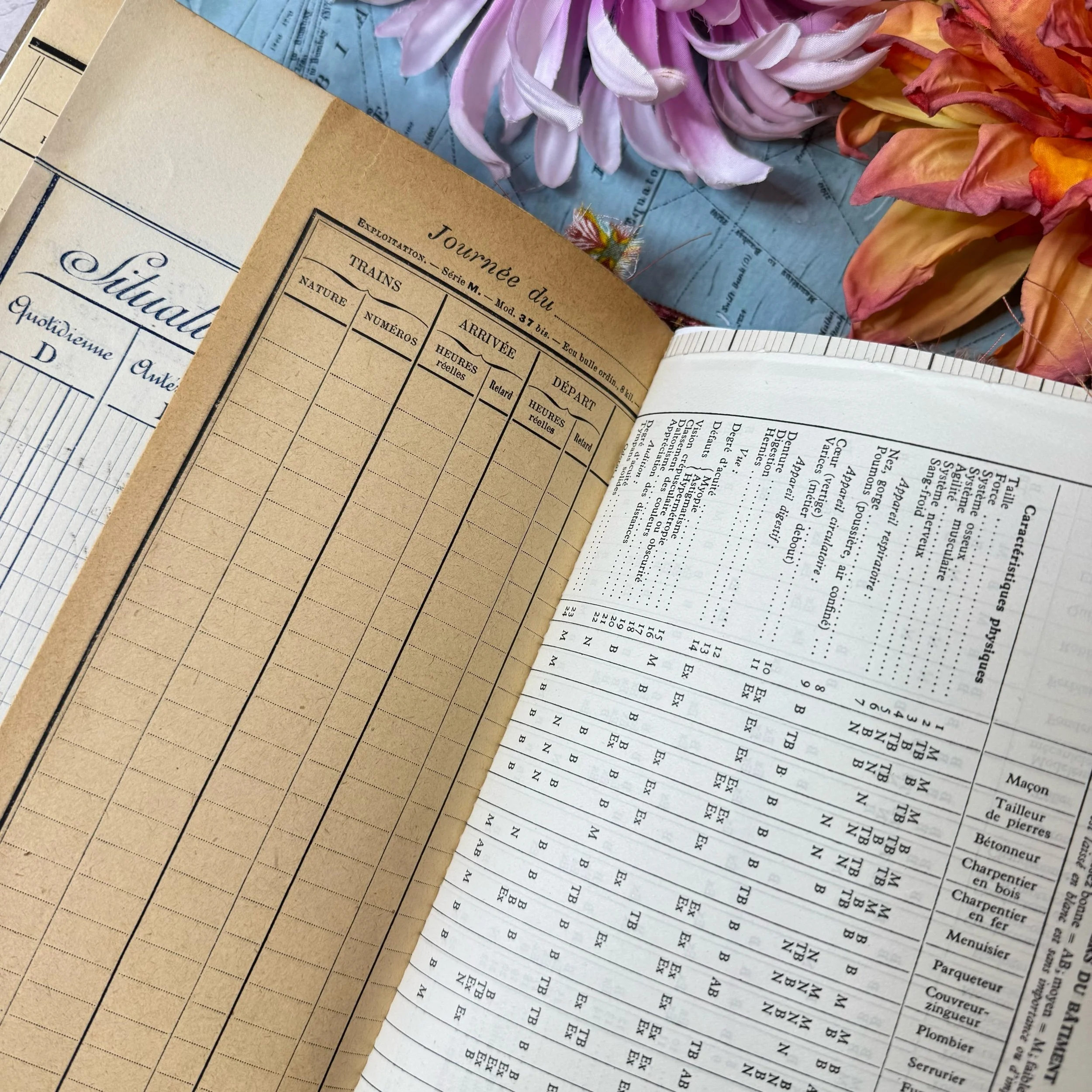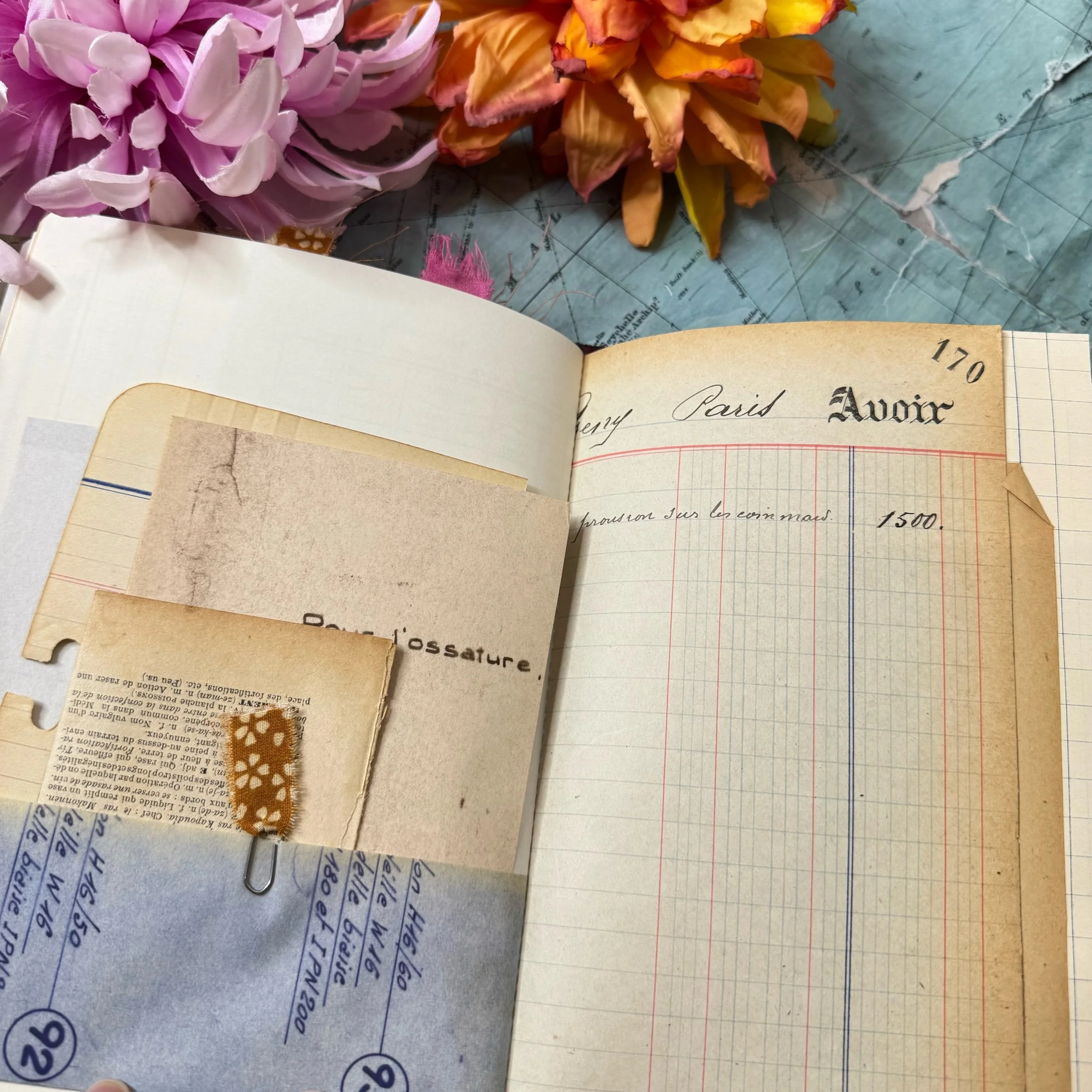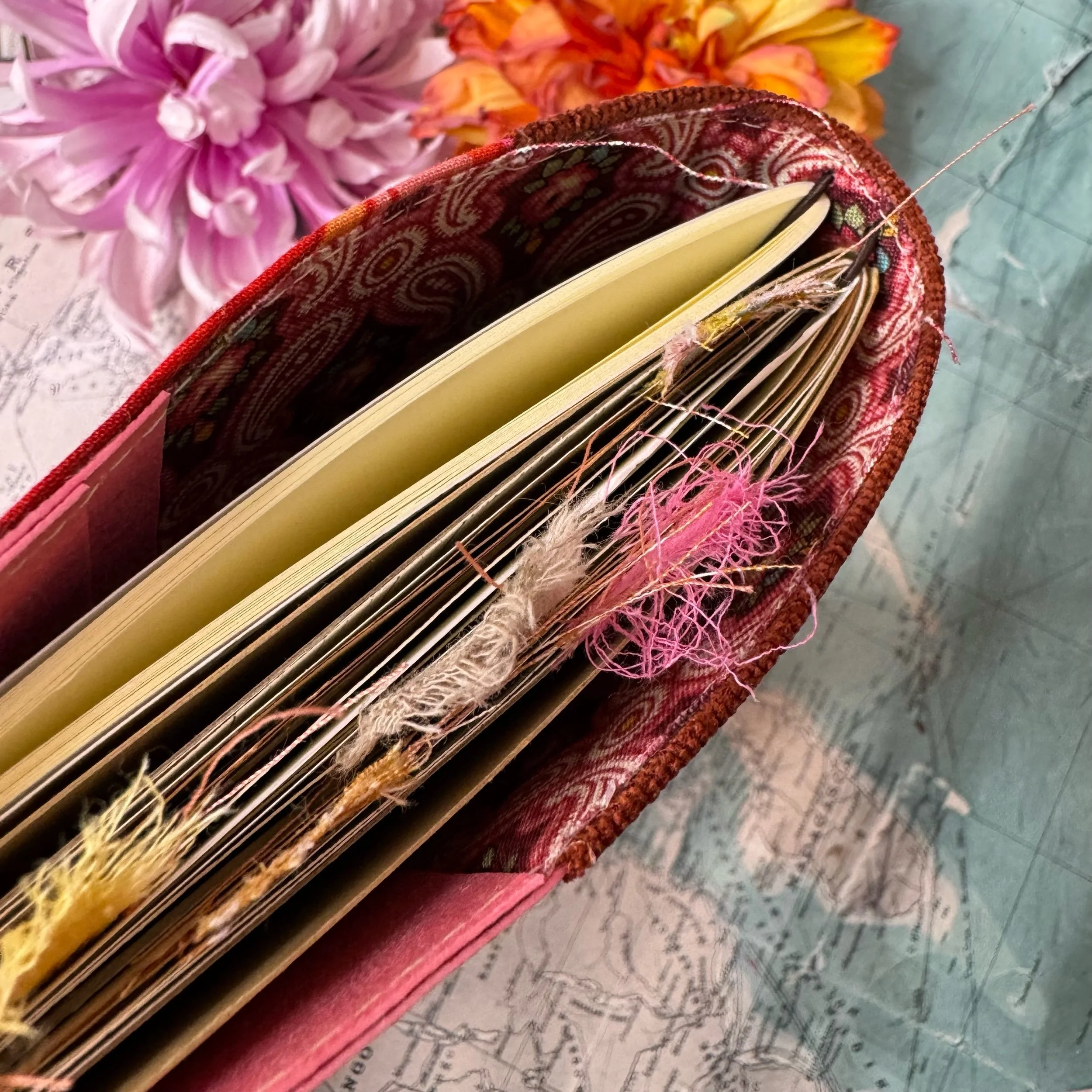 A5 insert of about 28 to 30 pages made of paper of various sizes and pockets