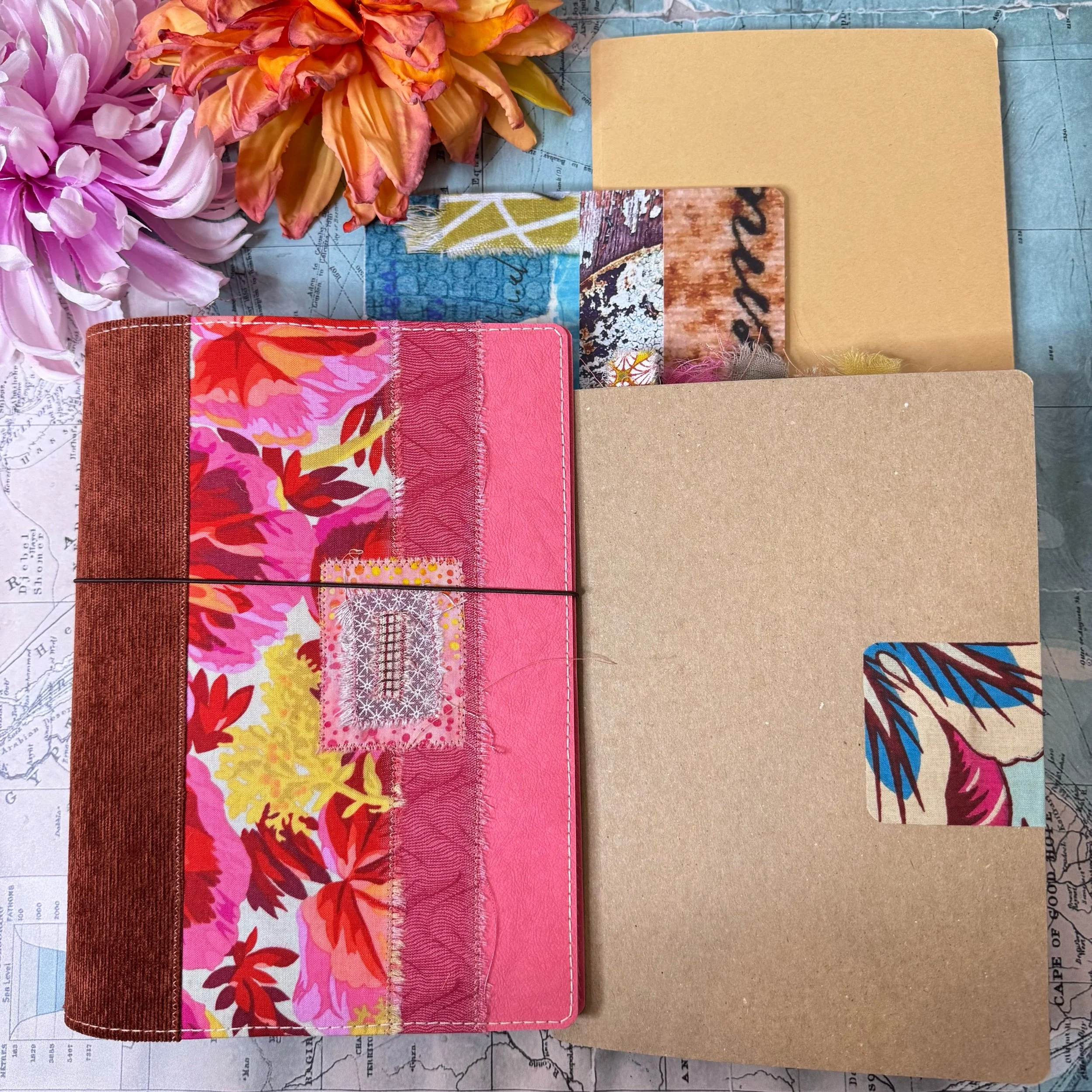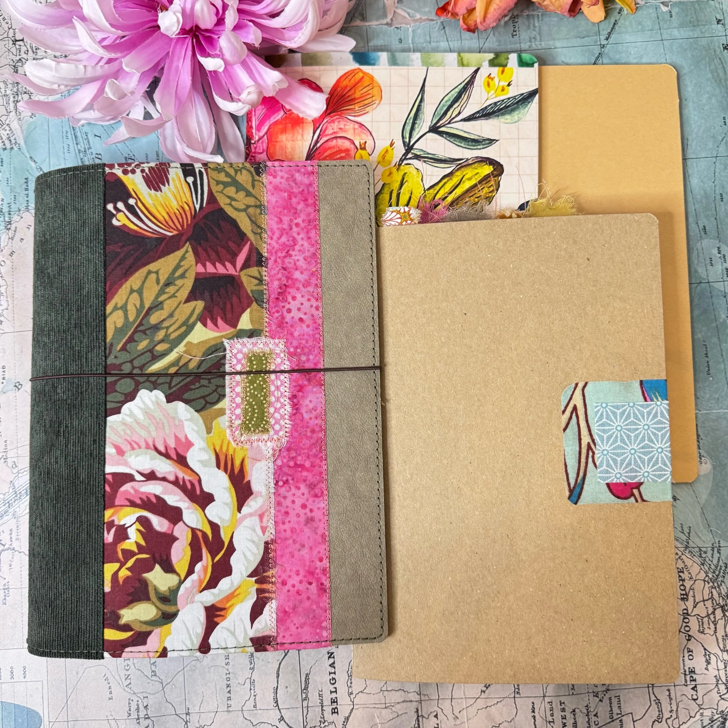 Hand Made Journal Cover - Fabric and Vegan Leather